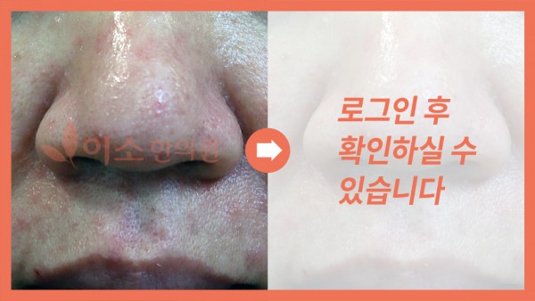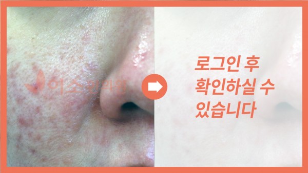 2년전 스테로이드 연고 중단 후 악화된 주사피부염 증상이 시간이 지나도 호전되지 않아 내원하신 40대 여성 주사피부염 치료 사례 입니다. 치료 전 치료 후