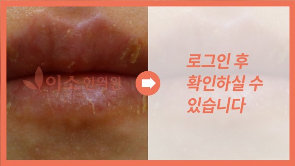 구순염으로 진단 후 스테로이드 외용제와 엘리델 연고를 반복적으로 사용했지만 호전이 안되어 내원하신 30대 여성 치료 전, 치료 3개월 후 사진 입니다. 치료 전 치료 후