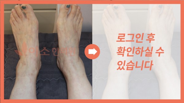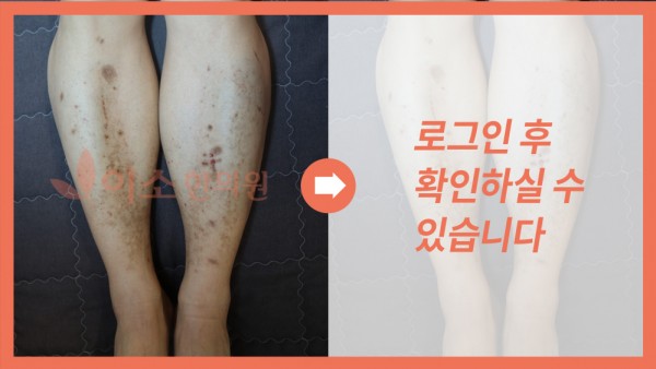 2년 가량 지속되던 만성색소성자반증으로 내원하신 40대 남성의 치료 전후 입니다. 색소성자반증은 천천히 출혈반 개수가 늘어나고 갈색의 색소침착을 남기면서 점점 환부가 넓어집니다. 우선은 새로운 피하 출혈이 멈추는 것이 치료의 목표 입니다. 갈색의 환부가 짙어지면 옅어지지 않고 흔적을 남기기 때문에 조기 정확한 진단과 치료를 하는 것이 중요 합니다. 치료 전 치료후