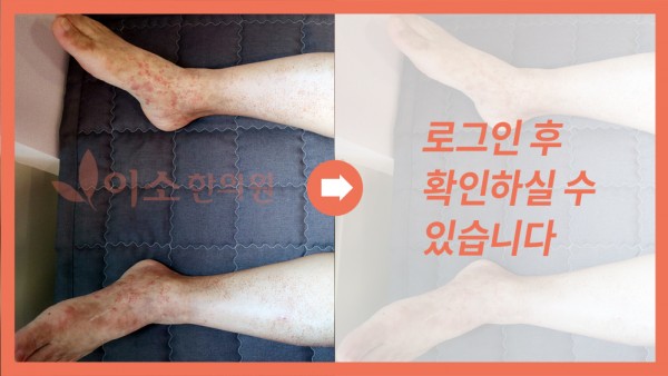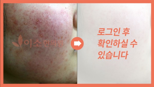 4년전 발생한 피부염으로 스테로이드 외용제를 상습적으로 사용했던 주사피부염 환자 입니다. 처음에는 피부 가려움 홍조로 시작했으나 스테로이드 외용제를 반복적으로 사용 하면서 피부장벽이 약해지고 충혈,가려움. 따가움 등이 혼재된 상태로 내원 하셨습니다. 체질 진단 후 한약 치료, 한방 외용제 치료, 침치료 등으로 호전 자각증상과 육안적으로도 피부 상태 개선되었습니다. 치료 전 치료 후