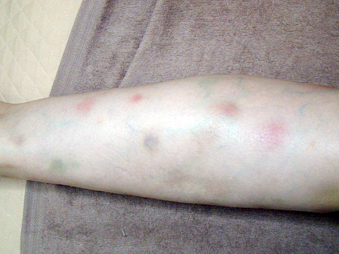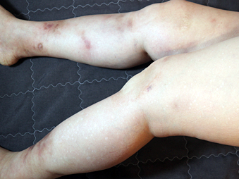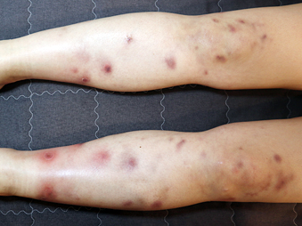 정강이 부위에 호발하지만 상지, 종아리나 허벅지 등 어느 부위에나 발생할 수 있고