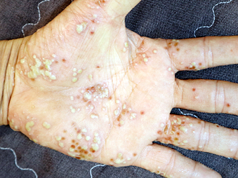 판상건선이 가장 흔한 형태지만 자잘한 구진이 생기는 물방울양건선, 손발에 주로 생기는 농포성건선(수장족저농포증), 홍피성 건선, 간찰부 건선 등의 다양한 형태가 있어서 감별이 필요합니다.