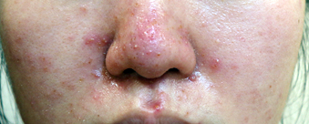 주사피부염은 얼굴 중앙 부위, 주로 코 주변에 발생하는 만성 충혈성 질환입니다.
