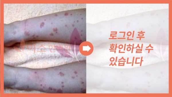 관절통과 복통을 동반한 6세 소아자반증 치료사례 평상시 감기로 인하여 항생제를 장기 복용 하던 6세 환아 입니다. 관절통과 복틍을 동반한 자반으로 시작하여, 초기에 대학병원에 입원을 하였으며 스테로이드 치료 후 퇴원을 했습니다. 퇴원후 처음보다 붉은 반점이 더 심해진 상태로 저희 병원에 내원하여 치료 시작하였습니다. 스테로이드 리바운드 현상을 우려하여 스테로이드 용량을 점차 줄여 가면서 한약치료, 침치료,뜸치료를 병행하여 치료종료된 사례입니다.